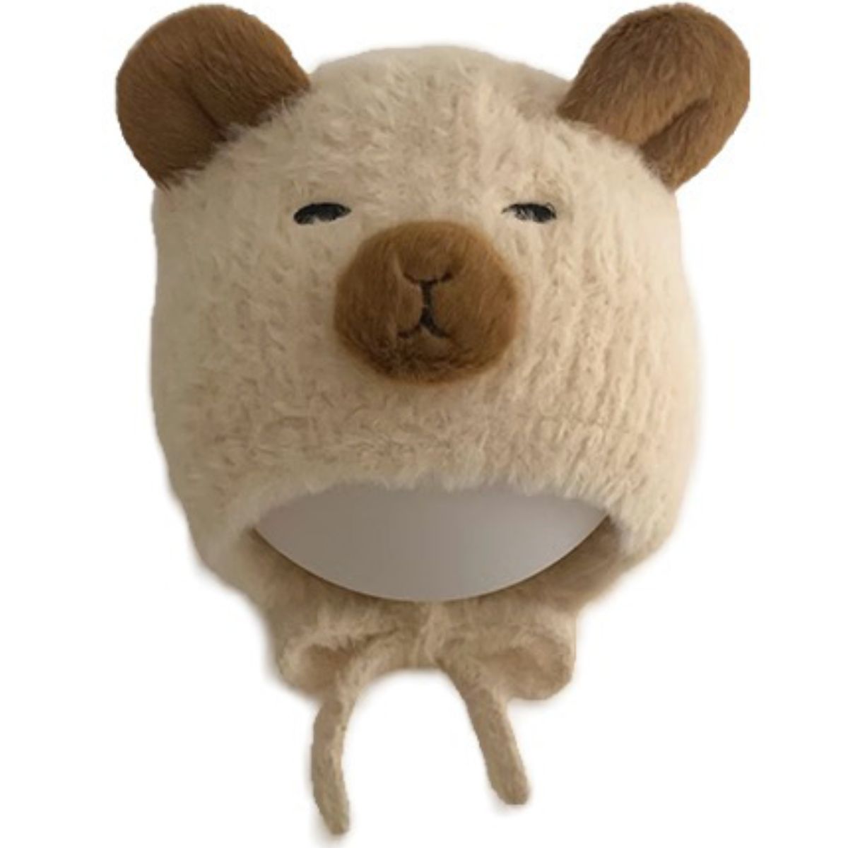Mũ len buộc dây lông xù thêu gấu