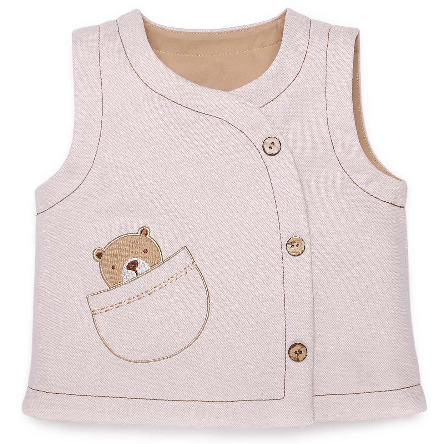 - Túi bụng áo gile có hình gấu nâu ngộ nghĩnh, mang lại vẻ ngoài đáng yêu, tinh nghịch cho bé