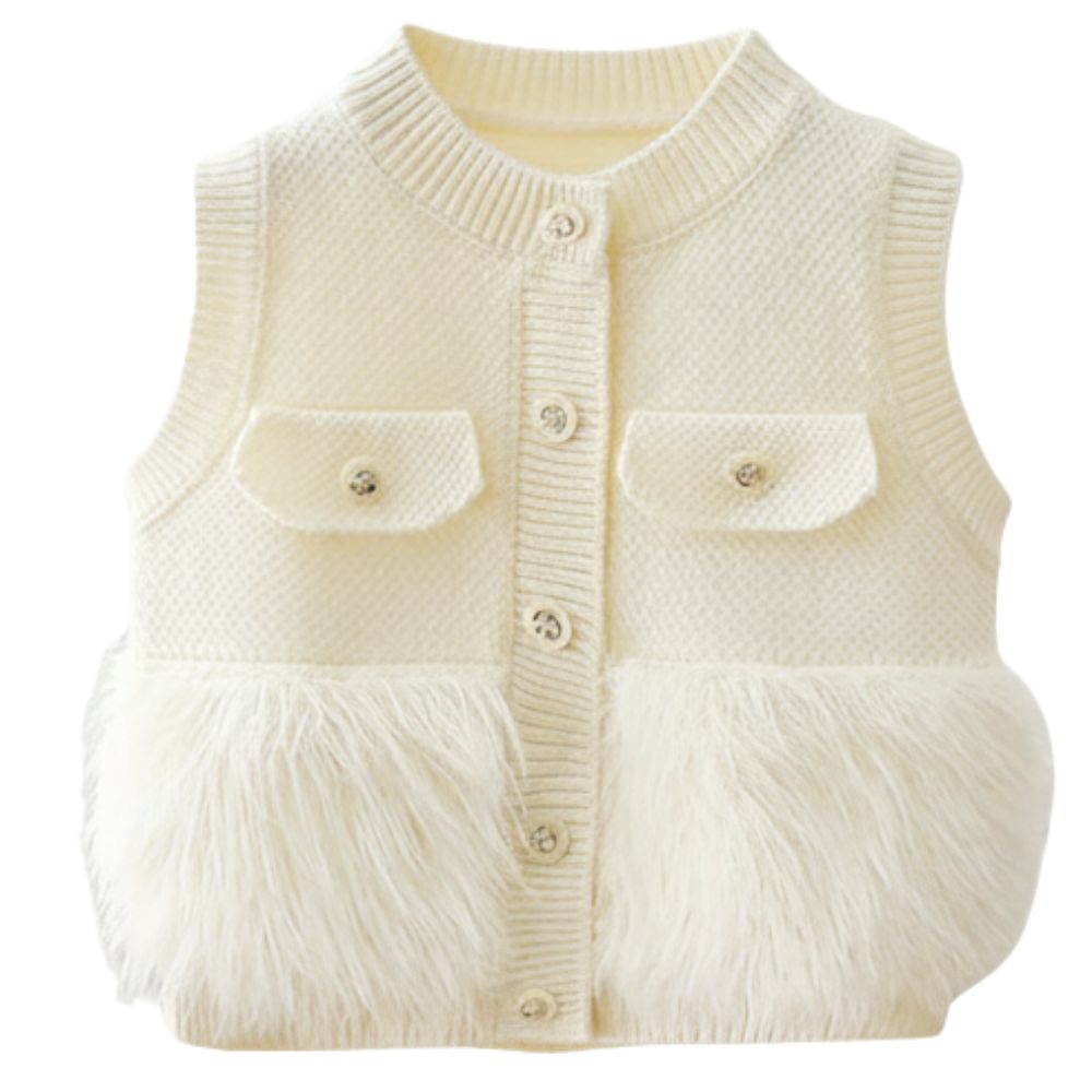 Áo gile len Rabi phối lông màu kem
