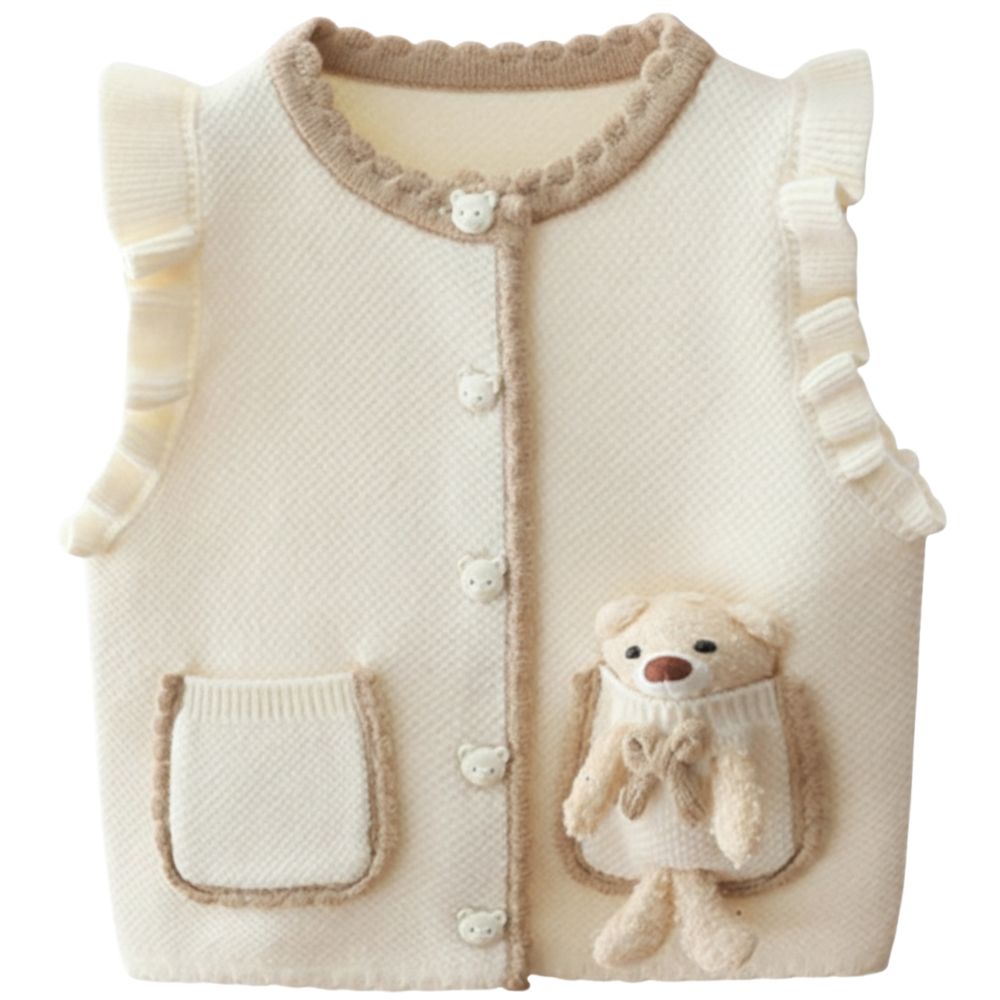 - Áo len gile có tông màu pastel nhẹ nhàng, mang lại cảm giác ấm áp và nữ tính cho bé gái.