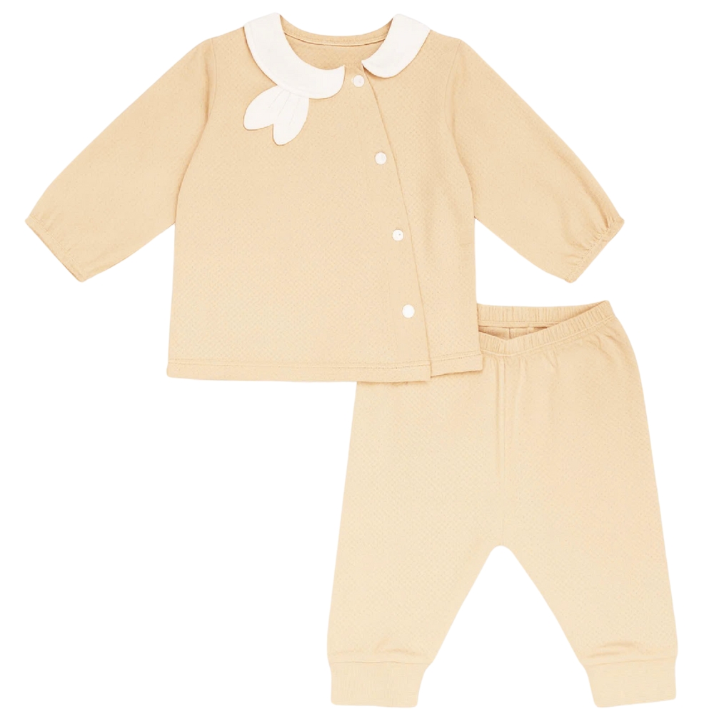 Bộ bé gái cài lệch dài tay Lullaby NH487N màu be nâu