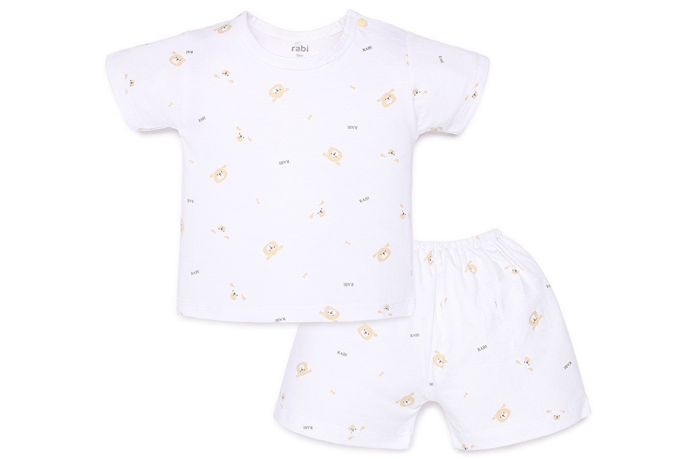 Bộ cộc tay cài vai Rabi CM30 trắng in cún