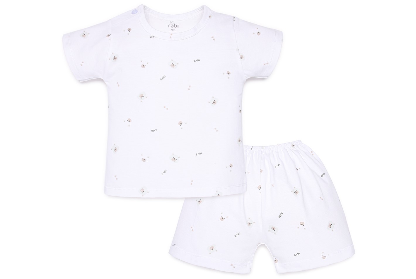 Bộ cộc tay cài vai Rabi CM30 trắng in gấu