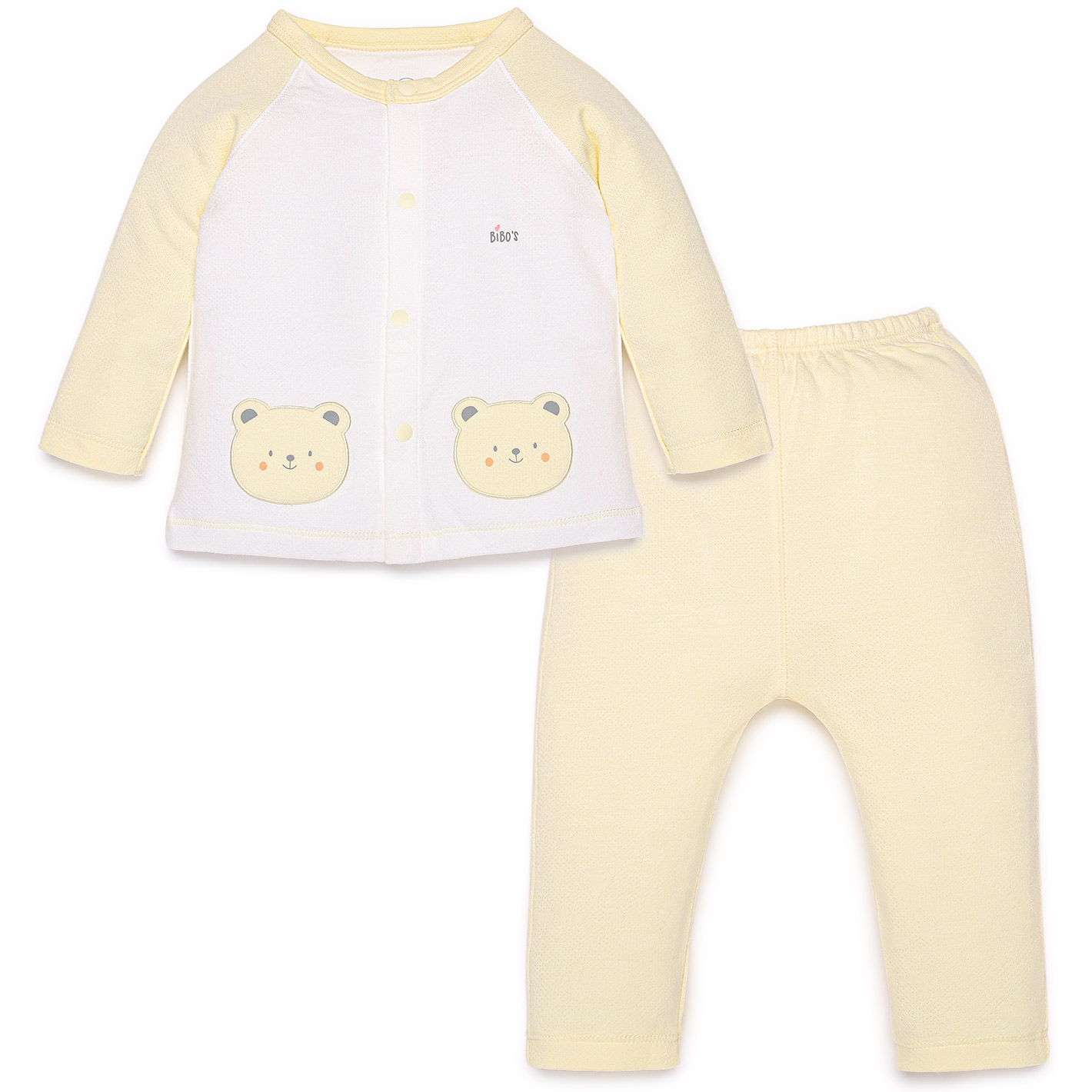 Bộ sơ sinh cài giữa tay raglan Bibos T31059 thêu gấu vàng