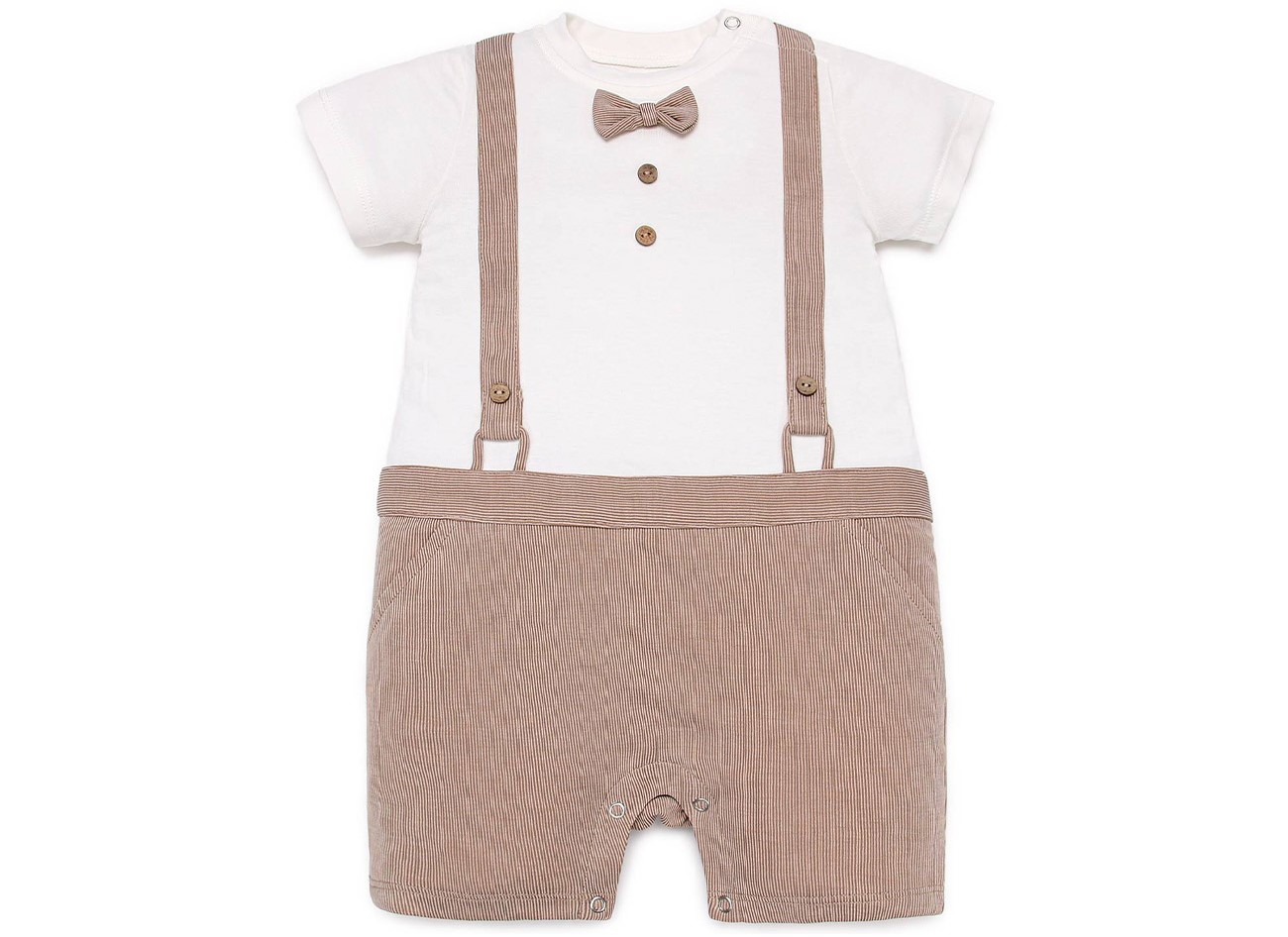 - Thiết kế liền thân mô phỏng kiểu áo sơ mi phối quần yếm mang đến vẻ ngoài bảnh bao như một quý ông nhí.