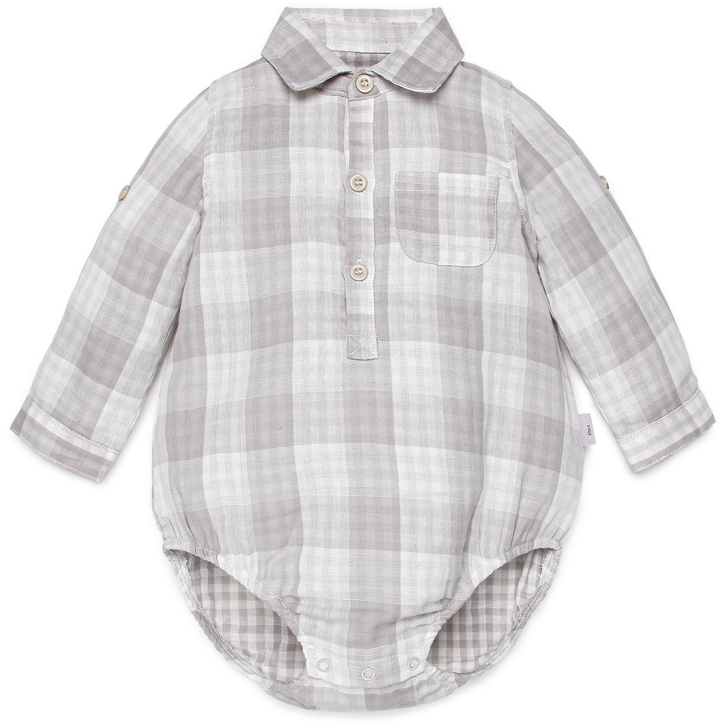 Bodysuit bé trai Bibo's sơ mi dài tay caro ghi