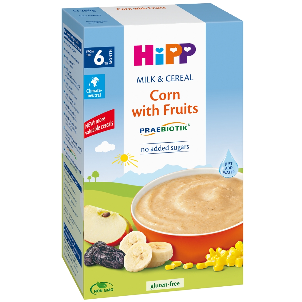 Chất xơ từ các hạt ngũ cốc như yến mạch nguyên hạt, gạo hay tinh bột ngô đặc biệt là ngô ngọt là những loại chất xơ rất nhuận tràng, tốt cho hệ tiêu hóa của bé. Bột ăn dặm HiPP hoa quả, sữa và bắp với 38% sữa bột công thức, cùng bột ngô và hoa quả giúp mẹ cung cấp năng lượng cho trẻ trong giai đoạn tăng trưởng, bổ sung chất xơ, Vitamin và Probiotic gúp hệ tiêu hóa của bé phát triển hoàn thiện hơn. Sản phẩm sẽ là sự chọ lựa đúng đắn của mẹ dành cho bé trong giai đoạn ăn dặm.
