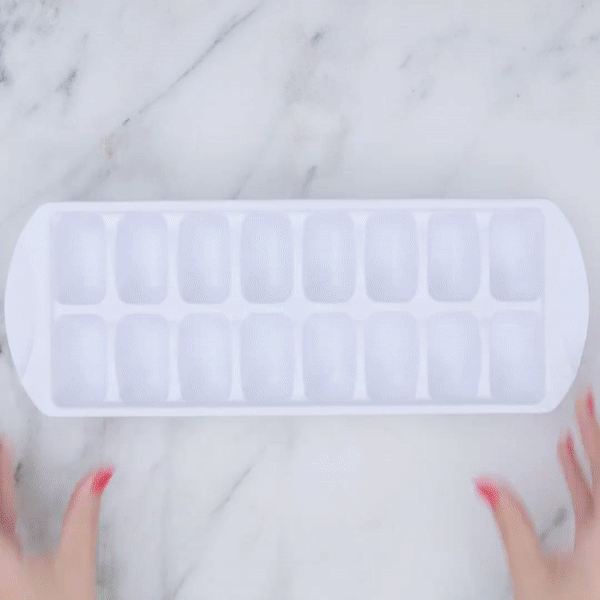 – Đặt 2- 3 cây kẹp giấy vào từng ô đá và đổ đầy nước. Sau đó, cho khay đá vào tủ lạnh đến khi đông cứng.