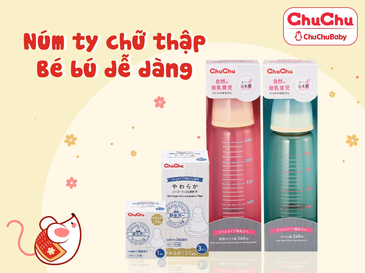 ChuChuBaby là thương hiệu bình sữa cho trẻ sơ sinh đầu tiên thiết kế núm ty chữ thập đặc biệt, tạo cho bé cảm giác như đang bú mẹ.