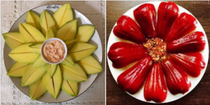 Không tốn quá nhiều thời gian, với nguyên liệu chỉ từ 1,2 loại quả, bạn có thể xếp thành những đĩa hoa quả sáng tạo như sau Xoài thái chua chua chấm muối ăn vặt vào...