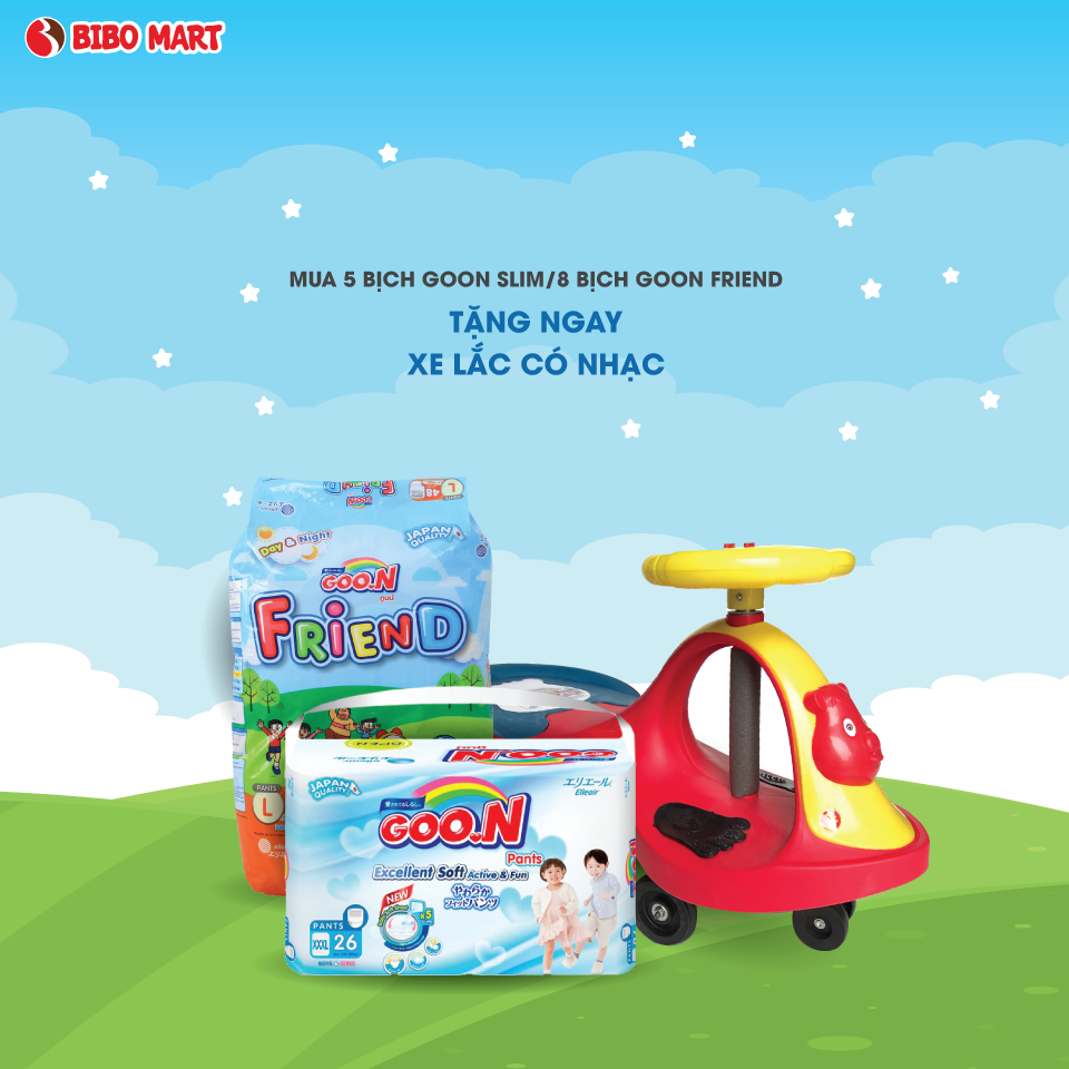 Mua 5 bịch GOO.N Slim đại hoặc 8 bịch GOO.N Friend đại Tặng 1 xe lắc có nhạc cho bé.