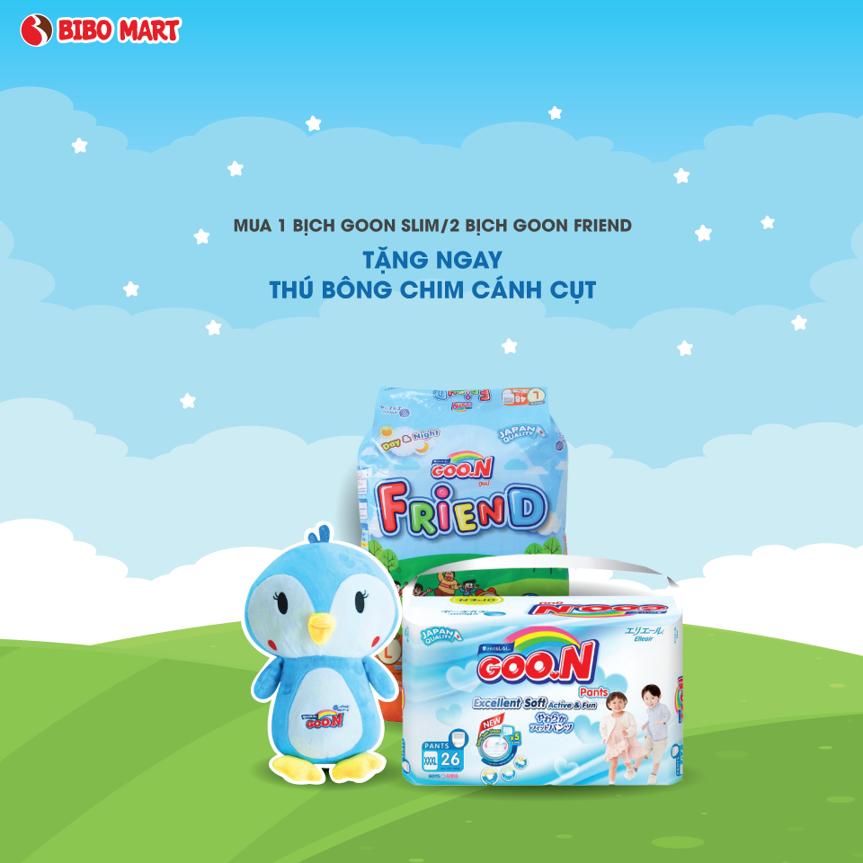 Mua 1 bịch GOO.N Slim đại hoặc 2 bịch GOO.N Friend đại Tặng 1 thú bông chim cánh cụt GOO.N dễ thương.