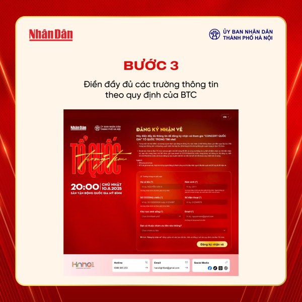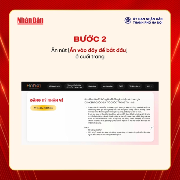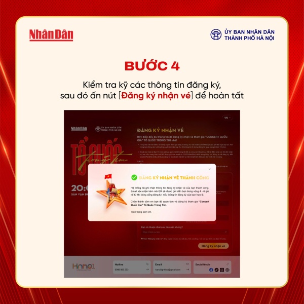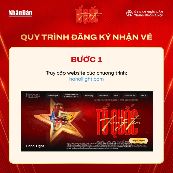 Dưới đây là hướng dẫn chi tiết cách đăng ký vé miễn phí tham dự “Concert Quốc gia – Tổ Quốc trong tim”: