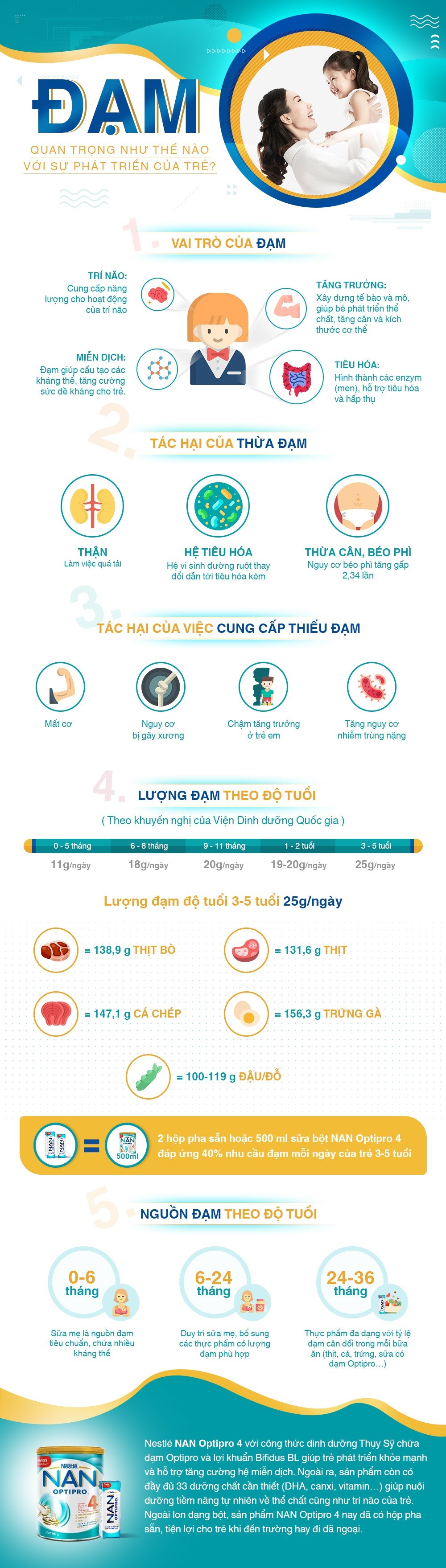 Việc cung cấp lượng đạm phù hợp với từng độ tuổi có vai trò quan trọng trong việc đảm bảo sự phát triển của trẻ, tránh tình trạng thừa cân.