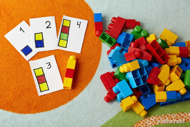 Một đứa trẻ có thể học toán cơ bản với các khối lego đầy màu sắc: