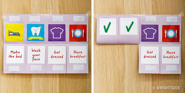 – Bố mẹ có thể đặt danh sách các việc cần làm này lên tường để nhắc nhở trẻ về các nhiệm vụ buổi sáng hàng ngày của chúng và giúp trẻ gắn bó với lịch trình này.