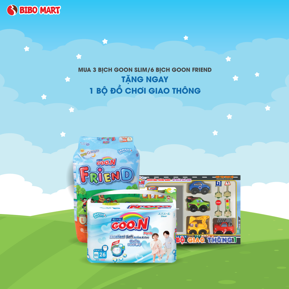 – Mua 3 bịch GOO.N Slim đại hoặc 5 bịch GOO.N Friend đại Tặng 1 Bộ đồ chơi giao thông.
