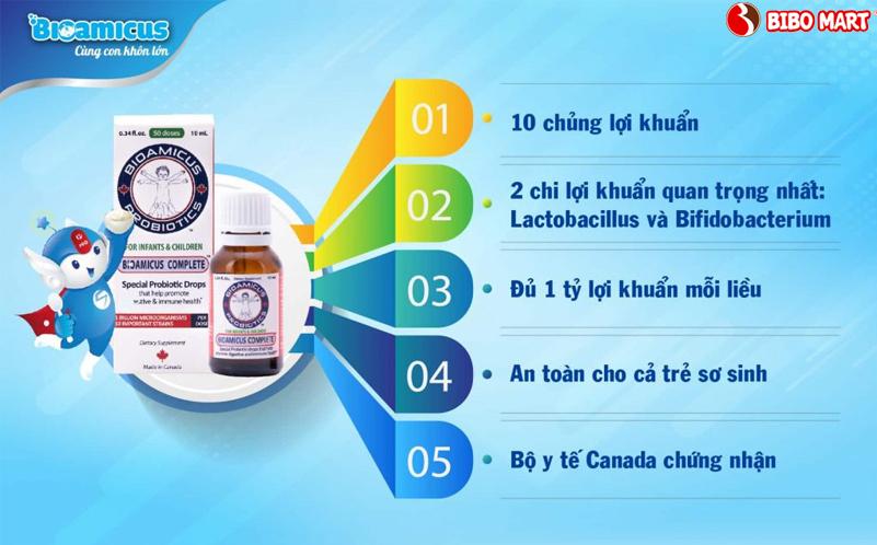 Khác với các sản phẩm khác trên thị trường, men vi sinh BioAmicus Complete của Bioamicus là sản phẩm có chứa 10 chủng lợi khuẩn quan trọng nhất thuộc 2 nhóm vi sinh vật Lactobacillus và Biofidobacterium cần có mặt trong đường ruột của trẻ ngay sau khi sinh. Là men vi sinh được phân lập tới cấp chủng đáp ứng tiêu chuẩn của Probiotics thực thụ của WHO.
