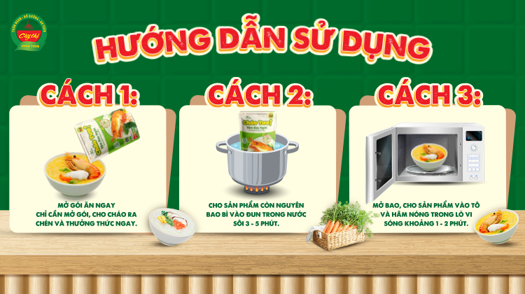 - Ngon hơn khi dùng nóng, làm nóng sản phẩm theo 2 cách sau: