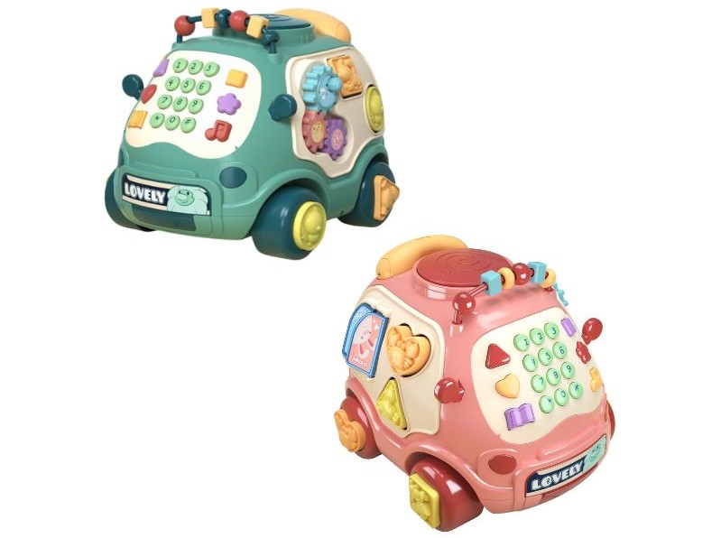 - Ngoài bảng nút bấm, xe còn có các hình khối gắn bên hông như hình tim, hình vuông, hình tam giác… giúp bé nhận biết hình dạng và phát triển tư duy logic.
