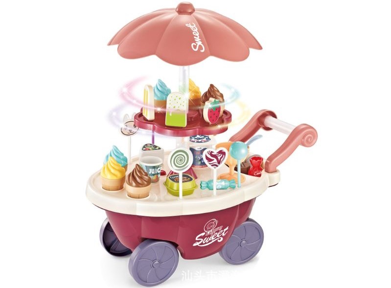 - Đồ chơi xe kem kem được thiết kế giống như một quầy kem di động thu nhỏ với bánh xe, tay cầm và mái che màu hồng siêu xinh, mang đến cảm giác chân thực khi chơi.