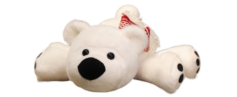 - Gấu tuyết trắng nhồi bông được may từ vải lông, rất mềm mại và mịn màng, không gây cộm ngứa hay tổn thương đến làn da mỏng manh của bé.