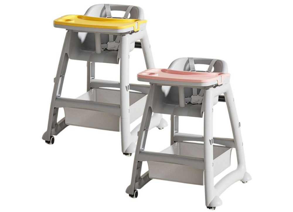 - Sản phẩm đi kèm hệ thống bánh xe xoay 360 độ, giúp phụ huynh dễ dàng di chuyển ghế mà không phải bê nặng.