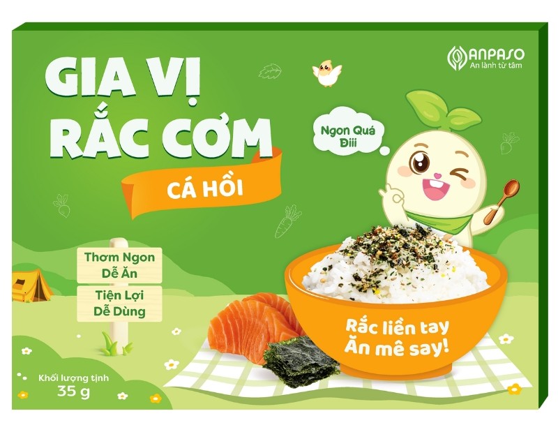 - Gia vị rắc cơm Anpaso vị cá hồi có công thức và tỉ lệ thành phần được nghiên cứu kỹ lưỡng, mang đến hương vị đậm đà cho bé ăn ngon miệng.