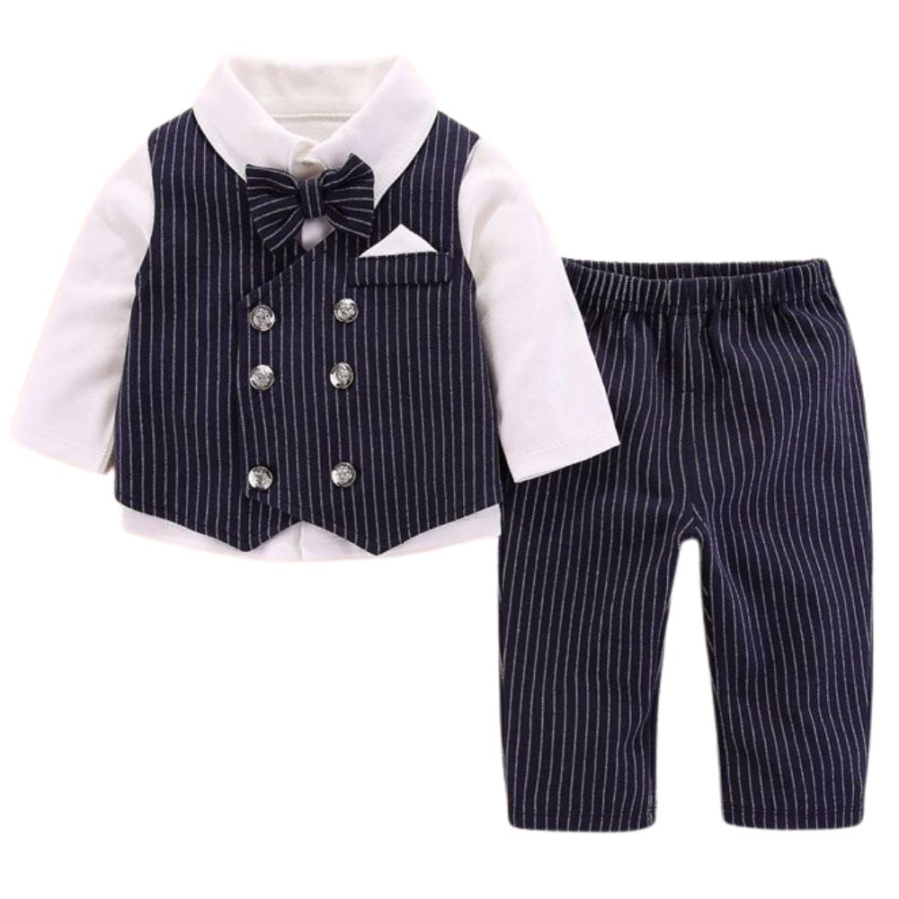 - Set gile công tử dài tay kèm nơ sử dụng vải cotton tự nhiên, có độ mềm cao và khả năng thấm hút mồ hôi tốt, giúp bé luôn ấm áp và dễ chịu trong suốt thời gian mặc.