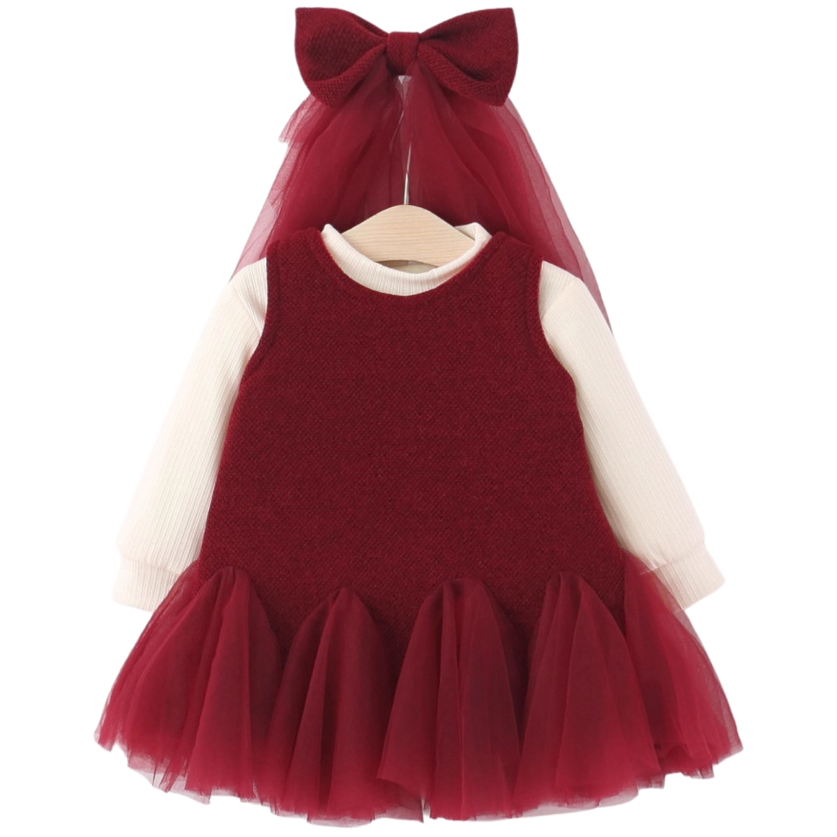 Set váy dạ đỏ phối len kèm khăn cho bé là lựa chọn hoàn hảo giúp bé yêu hóa thân thành nàng công chúa nhỏ giữa mùa đông ấm áp. Với tông đỏ dạ sang trọng kết hợp áo len trắng kem tinh khôi, bộ trang phục mang đến vẻ ngoài vừa ngọt ngào vừa thanh lịch. Chiếc khăn voan dài đính nơ bản to tạo điểm nhấn mềm mại, giúp bé tỏa sáng trong mọi khoảnh khắc – từ buổi dạo chơi, dự tiệc đến những khung hình kỷ niệm đáng yêu.