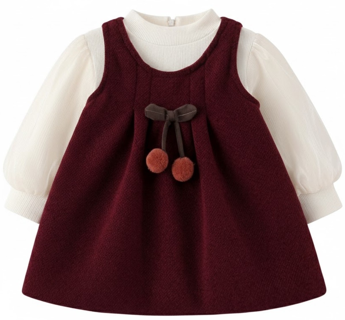 - Chi tiết đính nơ và quả cherry nhỏ ở ngực là điểm nhấn duyên dáng, giúp bé nổi bật và thu hút ánh nhìn ngay từ cái nhìn đầu tiên.