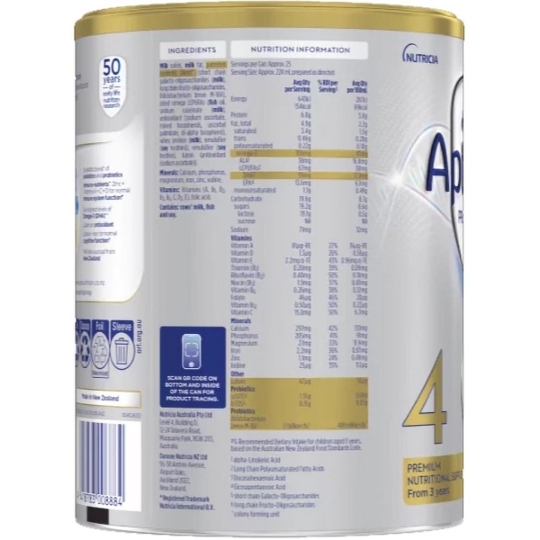 Thành phần dinh dưỡng sữa Aptamil số 4 Úc được in trên bao bì