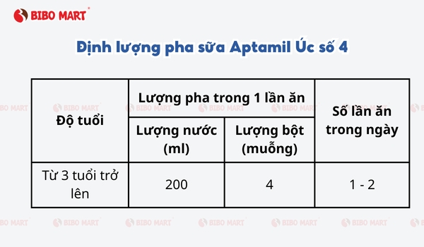 Định lượng pha sữa công thức Aptamil Profutura số 4