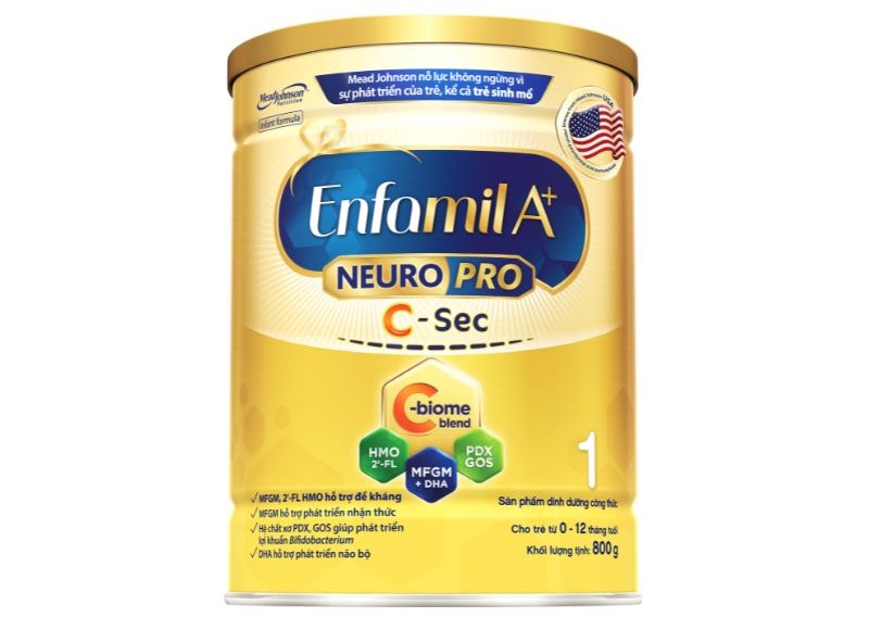 Sữa Enfamil A+ NeuroPro số 1 C-Sec 800g được coi là nguồn dinh dưỡng hoàn hảo cho trẻ sơ sinh. Đặc biệt dành riêng cho trẻ sinh mổ từ 0 -12 tháng tuổi, sữa Enfamil A+ giúp tăng cường đề kháng và hỗ trợ phát triển trí não vượt trội. Công thức C-biome blend kết hợp với HMO 2’-FL, MFGM, DHA và lợi khuẩn Bifidobacterium giúp bé yêu phát triển khỏe mạnh ngay từ những ngày đầu đời. Với hương vị nhẹ nhàng, dễ uống và phù hợp với hệ tiêu hóa non nớt của bé, sản phẩm là lựa chọn lý tưởng cho mẹ an tâm chăm sóc bé yêu mỗi ngày.