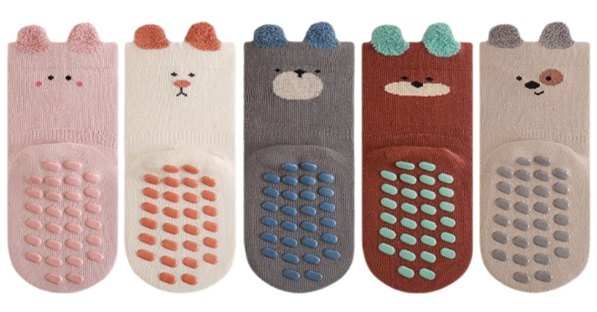- Tất chống trượt tai gấu in hình được làm từ cotton tự nhiên, có tính đàn hồi tốt, mang lại cảm giác mềm mại, thông thoáng và cực kỳ dễ chịu cho làn da non nớt của bé.