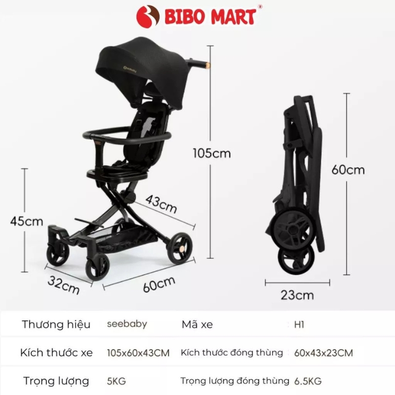 Xe đẩy Seebaby H1 l à dòng xe đẩy gấp gọn cao cấp dành cho bé từ 6 tháng tuổi.