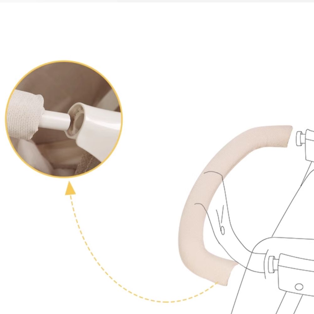 - Phần tay đẩy của xe được bọc đệm mềm mại, chống trơn trượt và thấm hút mồ hôi tốt, giúp ba mẹ thoải mái cầm nắm, đẩy xe trong thời gian dài mà không bị mỏi tay.